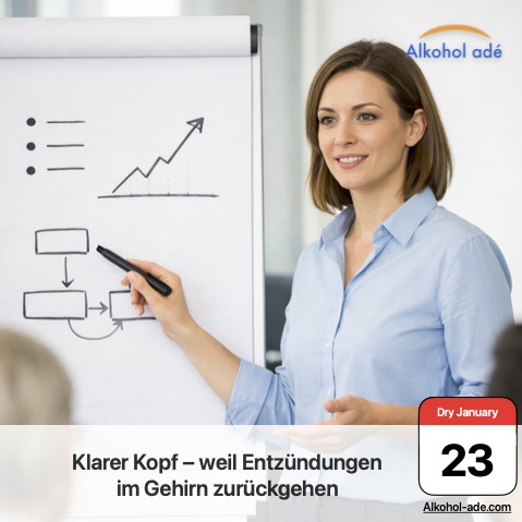 Mit anhaltender Abstinenz beginnt sich dieses Milieu zu beruhigen. Entzündliche Botenstoffe gehen zurück, die neuronale Kommunikation wird effizienter. Das Gehirn muss weniger Energie für „Störfeuer“ aufwenden und kann wieder präziser arbeiten. Diese Umstellung passiert nicht über Nacht, sondern schrittweise. Um Tag 23 herum wird sie für viele erstmals spürbar.